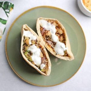 - Serve with Tzatziki and Enjoy: Arrange the stuffed pita pockets on a serving plate and serve with a side of tzatziki for drizzling or dipping. The creamy, tangy sauce complements the roasted vegetables and chickpeas perfectly. Enjoy immediately while warm, or store the filling separately for a convenient, protein-rich, and fiber-packed meal later.