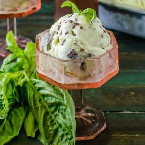 Experience the perfect harmony of creamy vanilla and fresh, aromatic basil with this easy-to-make ice cream.