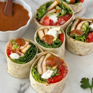 - Serve and Enjoy: Arrange the wraps on a plate and serve with any remaining BBQ sauce for dipping. These wraps are perfect hot, warm, or even room temperature, making them ideal for quick lunches, weeknight dinners, or meal prep. Enjoy the combination of smoky, spicy tofu, creamy sauce, and fresh, crisp vegetables in every bite.