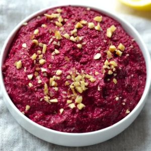 This vibrant Beet & Walnut Dip blends earthy roasted beets with crunchy walnuts, creamy tahini, and zesty lemon for a nutrient-rich, satisfying snack.