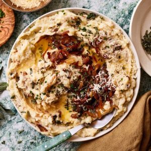 These caramelized onion mashed potatoes pair beautifully with roasted meats like turkey, chicken, beef, or pork, making them ideal for holiday feasts.