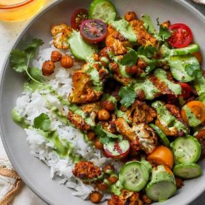- Assemble the Bowls: Divide 2 cups of cooked basmati rice evenly among 4 bowls, using about 1/2 cup per serving as the base. Arrange the roasted cauliflower and chickpeas on top of the rice. If desired, add thinly sliced cucumbers and halved cherry tomatoes for a refreshing crunch and colorful presentation.