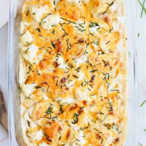 - Rest and Garnish: Remove the casserole from the oven and let it rest for 5–10 minutes. Resting allows the sauce to thicken and makes serving easier. Sprinkle additional fresh chives on top for a bright, fresh finish if desired.