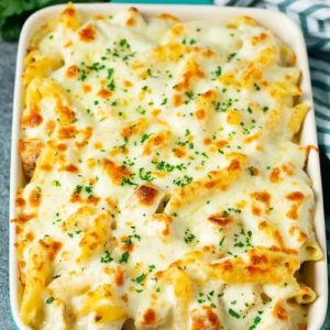 This creamy Chicken Alfredo Bake is a comforting, family-friendly meal that combines tender pasta, juicy chicken, and a luscious cheese sauce.