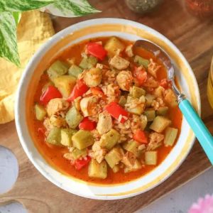 This dish contains rice, which adds carbohydrates. To make it lower carb, replace rice with cauliflower rice or omit it entirely and increase the amount of zucchini and chicken.