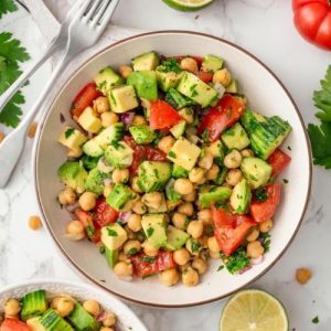 This vibrant Chickpea Avocado Salad is a refreshing, nutrient-packed dish that combines creamy avocado, protein-rich chickpeas, and crisp vegetables for a satisfying, fiber-filled meal.