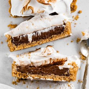 - Serve and Enjoy: Slice the tart carefully with a sharp knife, wiping it clean between cuts for neat portions. Serve immediately or keep refrigerated until ready to enjoy. Each bite delivers a perfect balance of buttery crust, creamy chocolate pudding, and fluffy, toasted marshmallow topping.