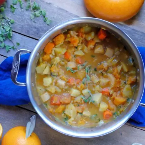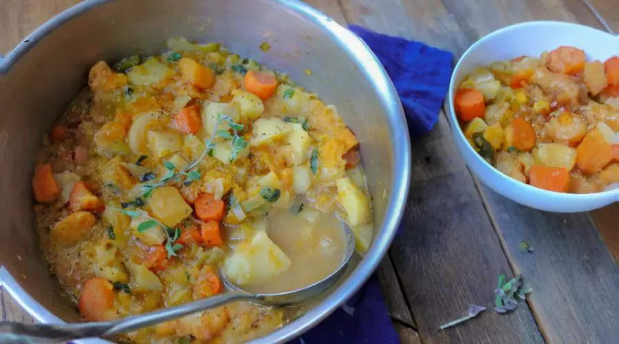 With a vibrant medley of carrots, parsnips, turnips, leeks, and butternut squash, it delivers a comforting, nutrient-dense meal perfect for cooler months.