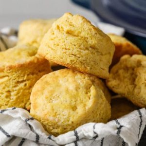These buttery, flaky cornbread biscuits are the perfect combination of tender biscuit layers and subtly sweet cornbread flavor.