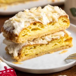 This Danish Puff Pastry is a delightful combination of flaky shortcrust and light, airy choux layers, finished with a sweet almond glaze and crunchy toppings.