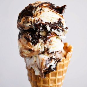 This dessert combines luscious vanilla ice cream with decadent swirls of chocolate fudge, delivering a treat high in good fats and protein from whipping cream.