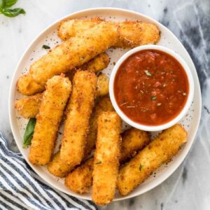 Mozzarella sticks are best enjoyed warm with dipping sauces such as marinara, ranch, aioli, or spicy mayo.