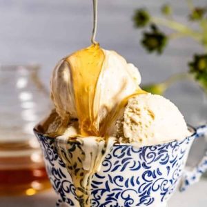 Yes, maple syrup or agave can be substituted, but the flavor will vary. Honey gives a distinct floral sweetness that defines this ice cream’s character.