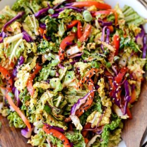 - Plate the Slaw: Transfer the dressed vegetables to a serving bowl or platter. Spread them evenly for an attractive presentation, showing off the colorful layers of Napa cabbage, purple cabbage, carrot ribbons, and red bell pepper.