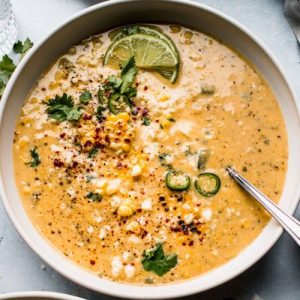 This creamy Mexican Street Corn Soup captures the bold, vibrant flavors of traditional elote in a comforting bowl.