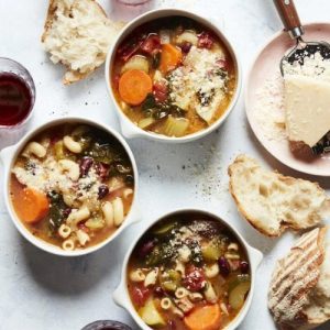Serve Minestrone Soup piping hot with fresh, crusty bread to soak up the savory tomato broth.