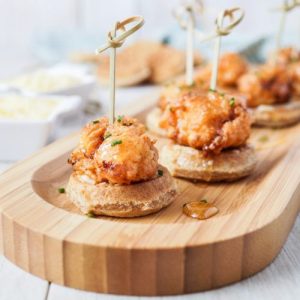 Mini Fried Chicken and Waffles shine as a versatile appetizer or brunch feature.