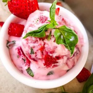 Indulge in the refreshing twist of Strawberry Basil Ice Cream, a no-churn dessert that combines sweet, juicy strawberries with aromatic basil.