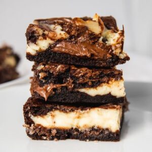Indulge in the perfect balance of rich chocolate, creamy cheesecake, and velvety Nutella with these irresistible cheesecake brownies.