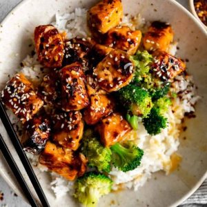 - Assemble and Serve: Place 2 cups of cooked white or brown rice in serving bowls as a base. Add 2 cups of steamed broccoli or your choice of vegetables. Arrange the glazed salmon cubes on top, and drizzle the remaining sauce over everything for a beautiful, flavorful finish. Garnish with additional orange zest or fresh herbs, if desired, and serve immediately for the best taste and texture.