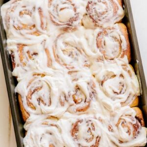 Overnight Cinnamon Rolls are best enjoyed fresh and warm, straight from the oven, topped with cream cheese icing.