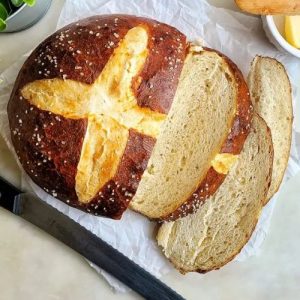 This homemade pretzel bread offers the perfect balance of a chewy crust and soft, fluffy interior, making it ideal for sandwiches or snacking.