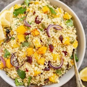 This vibrant Pumpkin Couscous Salad is a quick, wholesome dish that blends tender roasted pumpkin with zesty lemon dressing, crunchy pepitas, and sweet dried cranberries.