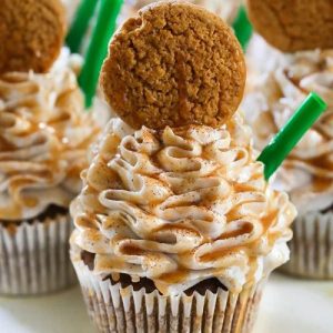 - Add Toppings and Garnish: Garnish each frosted cupcake with a gingersnap cookie pressed gently into the frosting. Insert a green straw into each cupcake for a fun, latte-inspired look. Finally, drizzle caramel sauce over the frosting for an irresistible finishing touch.
