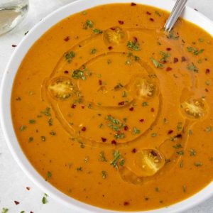 - Garnish and Serve: Once the soup is hot and silky smooth, ladle it into serving bowls. Garnish generously with freshly chopped basil, a few sliced cherry tomatoes, and a sprinkle of chili flakes for a little color and spice. Drizzle each bowl with a touch of olive oil for a glossy, restaurant-worthy finish. Serve it alongside crusty bread, grilled cheese, or a green salad for a complete, comforting meal that tastes like it came from a gourmet kitchen.