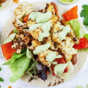 - Assemble the Tacos: Start by spreading a layer of heated beans onto each warm tortilla. Top with roasted cauliflower and bell peppers, then add a layer of chopped lettuce or greens. Drizzle generously with the creamy cashew-cilantro sauce. Add any extra toppings or sauces of your choice, such as salsa, hot sauce, or avocado slices, to personalize your tacos.