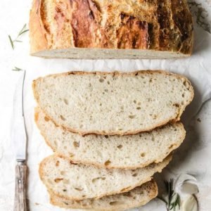 This no-knead Rosemary & Roasted Garlic Bread combines the rich aroma of roasted garlic with the earthy notes of fresh rosemary for a flavorful, wholesome loaf.