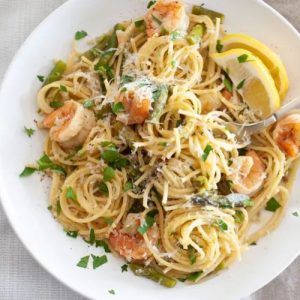 This Shrimp and Asparagus Pasta is a vibrant, flavorful weeknight meal that combines tender shrimp, crisp asparagus, and perfectly cooked spaghetti in a light, lemony garlic sauce.