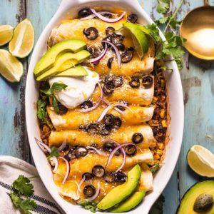 Use low-sodium canned beans, corn, and enchilada sauce. You can also rinse canned ingredients to remove excess salt and season the dish lightly yourself for better control over sodium levels.