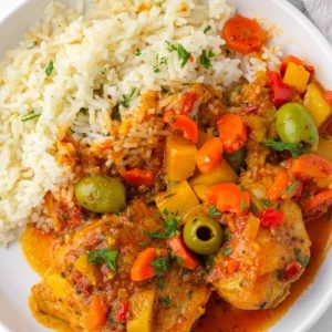 This Spanish Chicken Stew is versatile and pairs well with many sides.