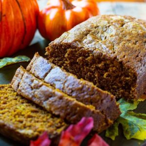 This bold and aromatic pumpkin bread is a cozy treat packed with warm spices like nutmeg, cinnamon, and cloves.