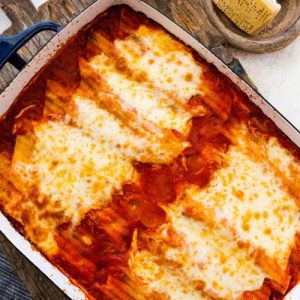 Yes! Frozen spinach works perfectly. Make sure it’s fully thawed and squeezed dry to remove excess water. This prevents the filling from becoming too wet and ensures the manicotti holds its shape.