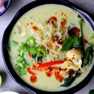 This Thai Green Curry Soup is a warm, nourishing bowl that combines fragrant herbs, creamy coconut milk, and tender rice noodles into a satisfying one-pot meal.