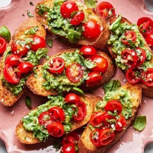 This Tomato and Avocado Bruschetta combines the creamy richness of avocado with the bright, juicy flavor of fresh cherry tomatoes for a light yet satisfying appetizer.