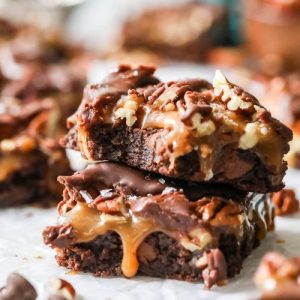 Indulge in rich, fudgy Turtle Brownies topped with buttery caramel, crunchy pecans, and silky chocolate drizzle.