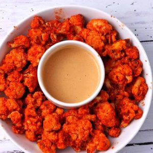 - Serve and Enjoy: Serve the spicy cauliflower wings immediately with peanut dipping sauce on the side. They are perfect as a snack, appetizer, or part of a meal. Garnish with sesame seeds or chopped fresh herbs for extra flavor and visual appeal. Store leftovers in an airtight container for up to three days, reheating gently in the air fryer or oven to retain crispiness.