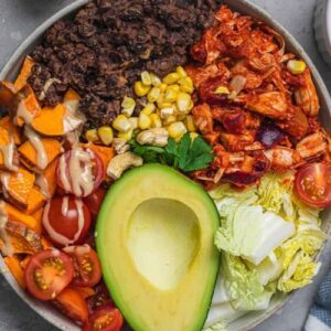 Absolutely. This recipe is great for meal prep. Store roasted sweet potatoes, smoky jackfruit, and black beans separately in airtight containers. Assemble fresh when ready to eat to maintain texture and flavor.