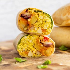 This vibrant Vegan Breakfast Burrito combines a protein-rich tofu scramble, hearty spiced breakfast potatoes, and optional chickpea pancakes for a filling, nutritious start to your day.