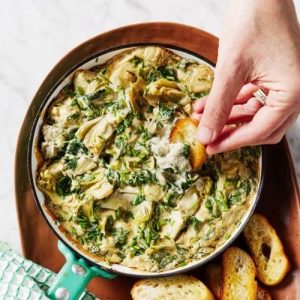 Packed with protein-rich cashews, fiber-filled spinach, and heart-healthy artichokes, it’s a nourishing appetizer that’s low in saturated fat.